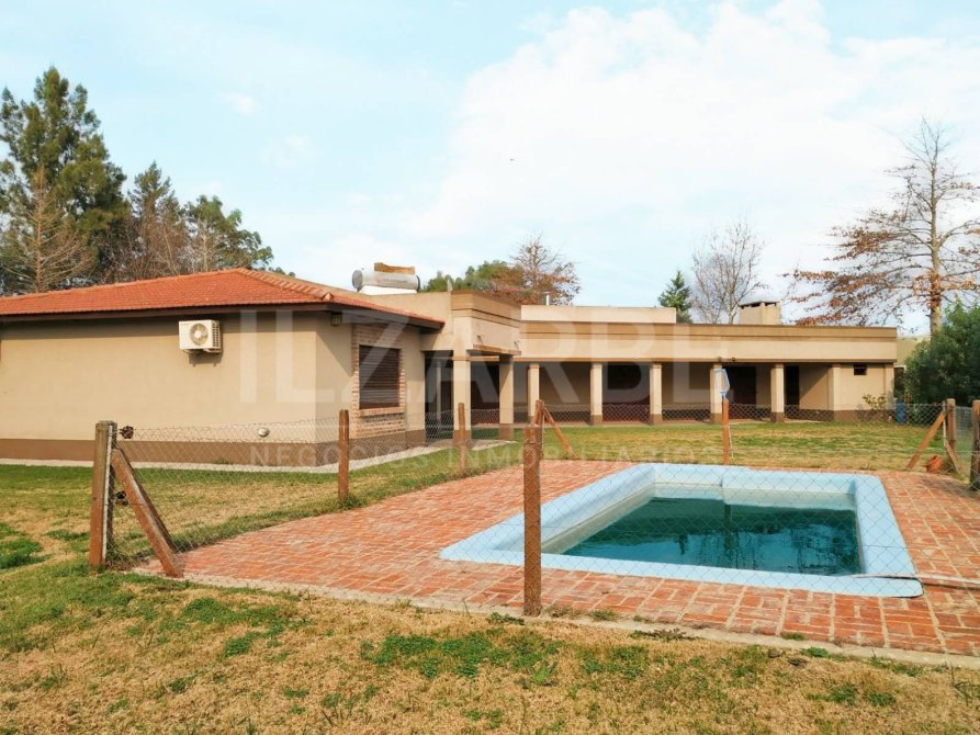 Por último, en su exterior, cuenta con más de 2000m2 de césped y gran arboleada (formada por un ciprés calvo, liquidambar, ceibo, un arra llan, casuarinas, palmeras, sauces, bachi chitos y una guayaba); y una pileta de fibra de vidrio (con vereda y alambrado a su alrededor).