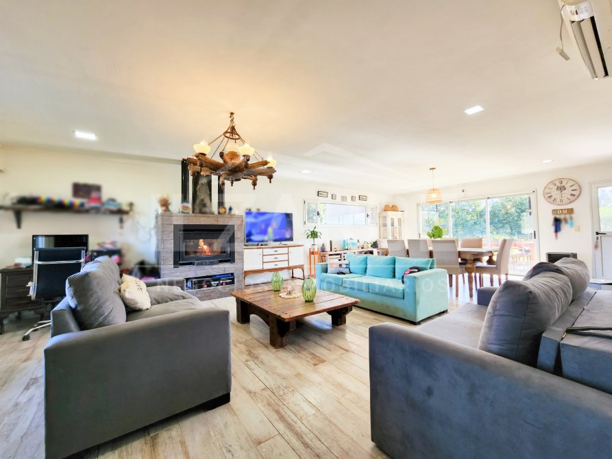 Entonces, optando por ir por el lado izquierdo, se encuentra un living de gran tamaño (en concepto abierto, en "L" con la siguientes dos) con estufa a leña (marca: "lepen") y aire acondicionado (frio/calor).