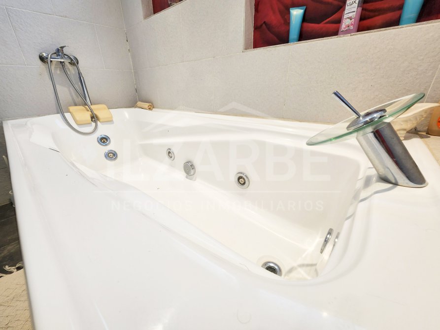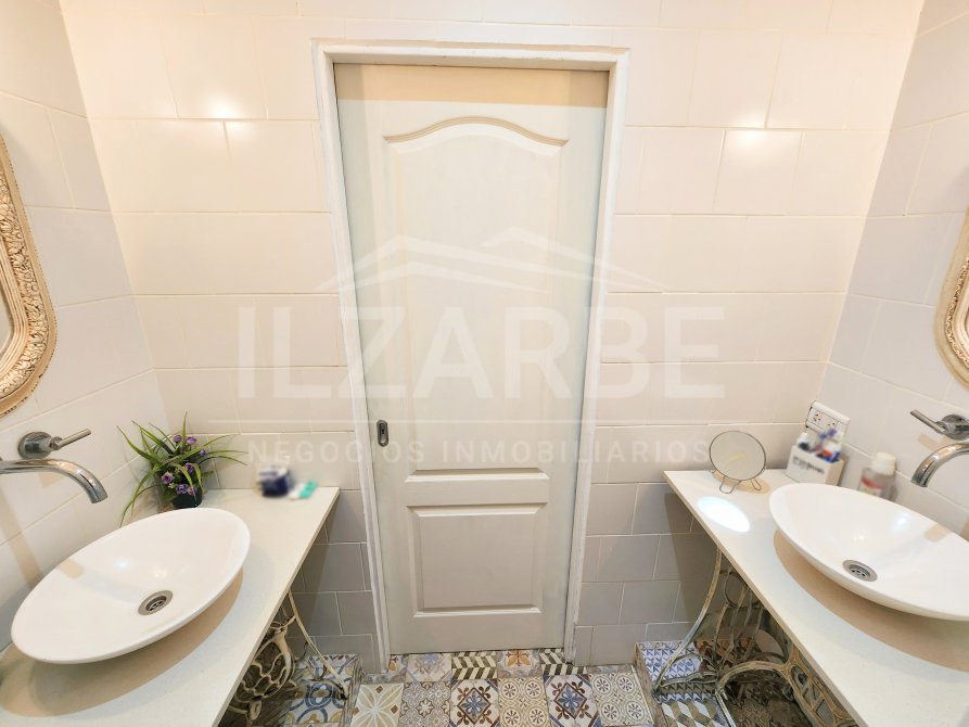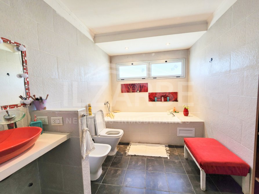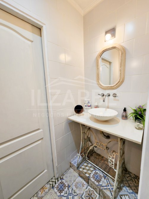 Volviendo al interior, hay un baño completo (para el público y/o el privado); el cuál consta de un ante baño con dos lavabos y, separado de esto: inodoro, bidé y ducha (con mampara de ladrillo de vidrio). Además de una pequeña habitacion destinada al lavadero, con salida al patio (con puerta-ventana).