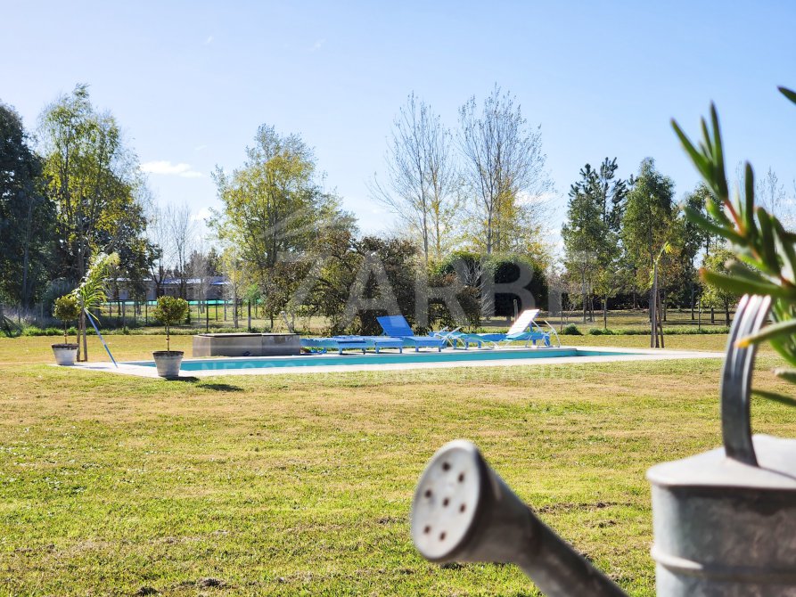 Acerca del exterior, cuenta con mayúsculo parque (de más de 10.000m2). En el, se encuentra una pileta de buen tamaño (10mts x 3.5mts) y un galpón (128m2)