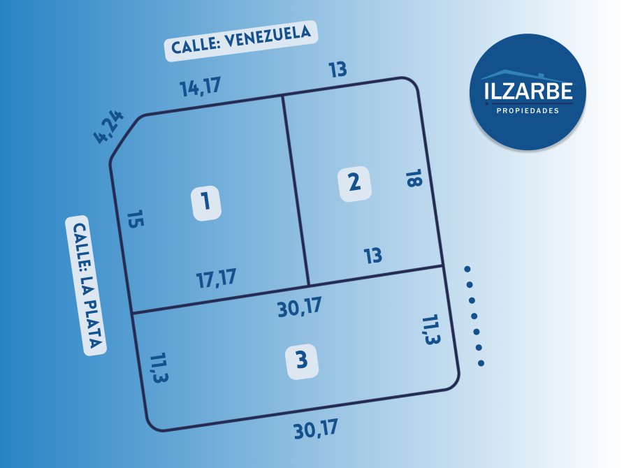 Con respecto a las medidas y valores individuales (en la 2 imágen adjuntada se califica a cada lote bajo uno de los siguientes números: 1, 2 y 3), son las siguientes: