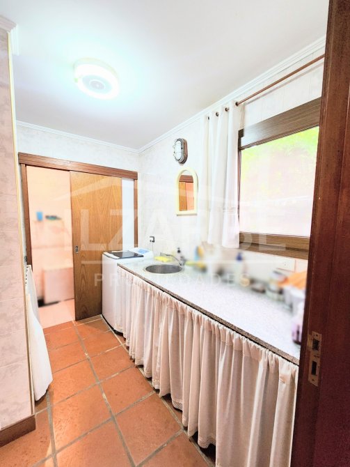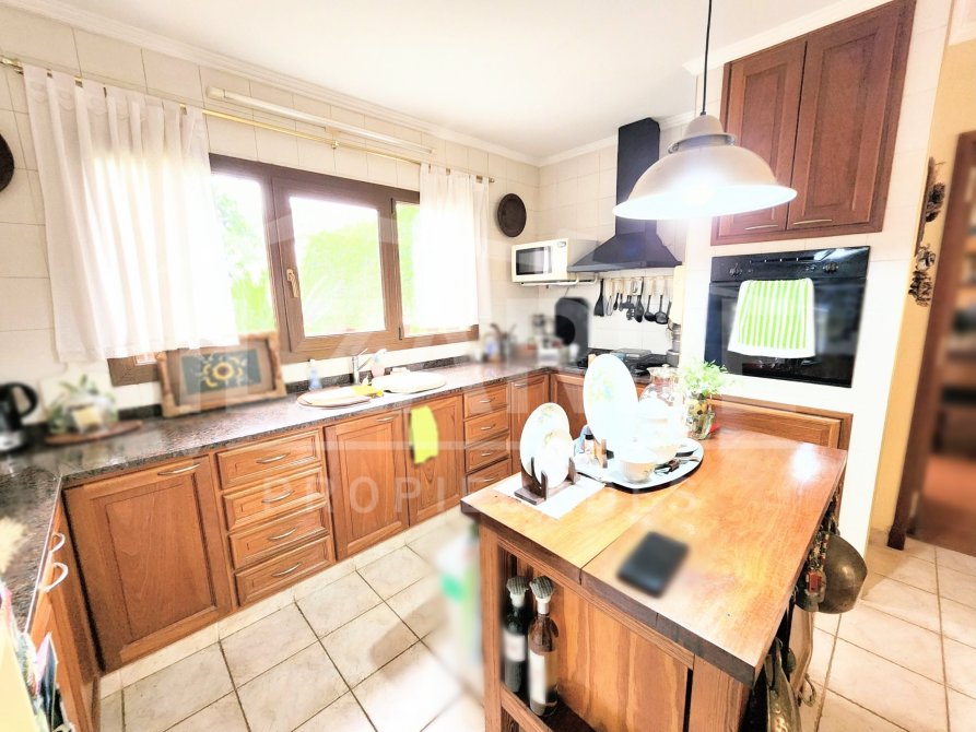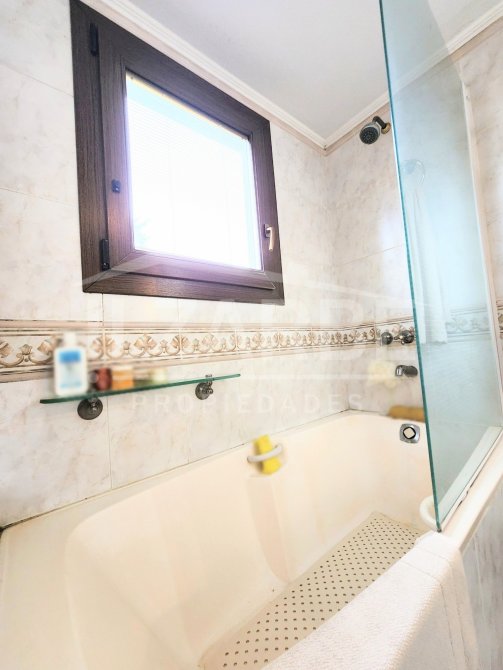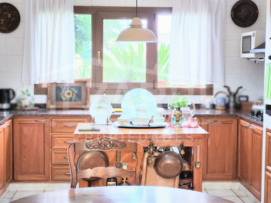 Por otro lado, en el ala izquierda, primeramente, se encuentra un baño completo (con ducha) y la cocina-comedor (conectadas por una isla), con salida al patio por unas puertas-ventana de PVC (simil madera, doble vidrio y oscilo-batiente; características que se repiten también en el resto de la propiedad).