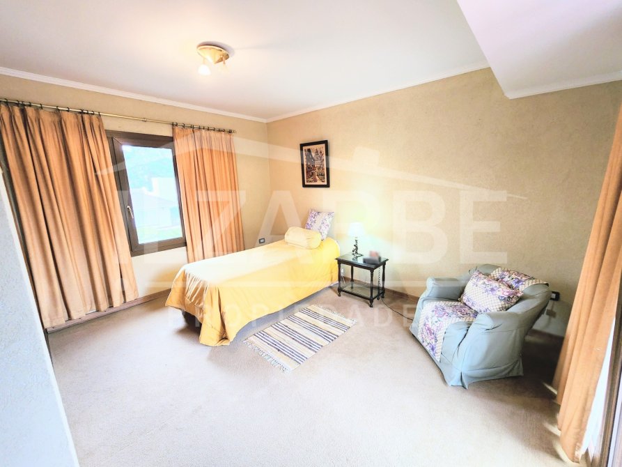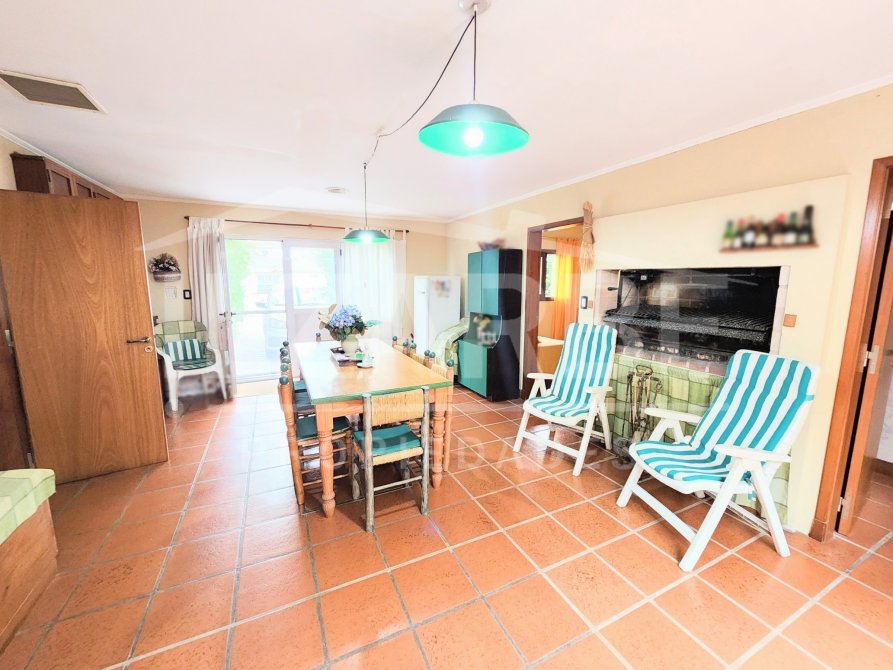 Continuado por la misma línea, se ubica el garage/quincho. El mismo posee un amplio tamaño, con parrilla y un sector con una lucarna (que le da aún mas luz al espacio). Desde este punto, se puede acceder dos de los cuatro dormitorios que hay, cómo asi al patio y al lavadero.