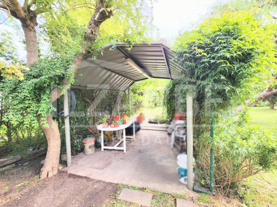En cuánto al exterior, la propiedad cuenta con enorme patio. En su mayoría de césped, con arboleda y plantaciones (ej: de granada, mandarina, durazno), y un semicubierto compuesto de chapa trapezoidal en forma de arco de medio punto. Para concluir totalmente, también hay un sector con piso de laja san luis, ideal para dejar (por ejemplo) una mesa con sillas, y disfrutar de la naturaleza y tranquilidad. Definitivamente, una oportunidad.