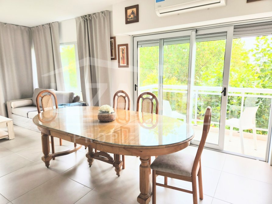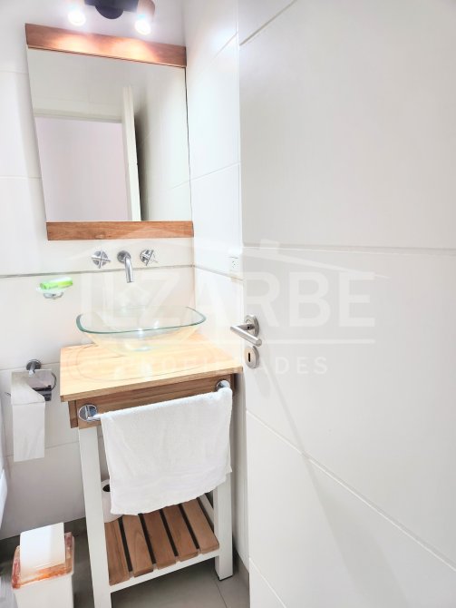 Cuenta con su propia cochera. Y con respecto al edificio en sí, dispone de la accesibilidad de un ascensor, y también posee escaleras. Con lavadero (cubierto) y terraza compartidas. Desde esta última, se puede apreciar la laguna.