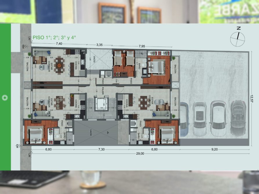 Cuenta con COCHERAS (con bauleras individuales). Son seis (6) en total, dos semicubiertas y cuatro descubiertas. El valor es: U$D 20.000 Síntesis de la unidad ("A"):