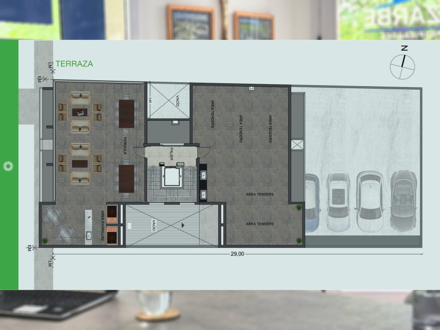• Constituido con dos (2) amplias terrazas; una de ellas con sector de parrilla. Esta contará con dos parrillas individuales junto a una amplia barra de hormigón a la vista con bacha de acerso inoxidable (y excelentes vistas a la Laguna y el bulevar). La otra será un sector de servicio; con dos lavabos bajo un semi-cubierto y un area de secado de ropa.
