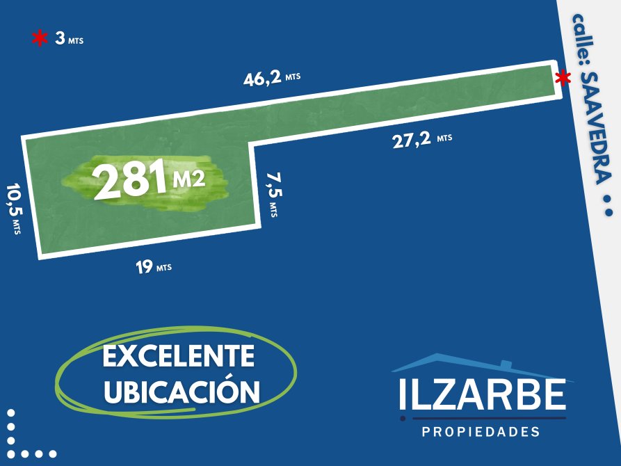 • Superficie total: 281m2 (con 46,2mts de fondo; medidas más específicas ilustradas en la 2° imágen adjuntada)