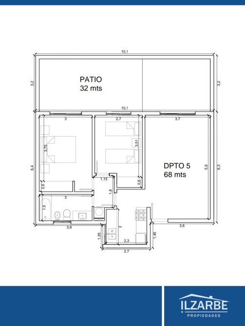 • 2 dormitorios (con placard empotrado, vista al patio, y calefactor)