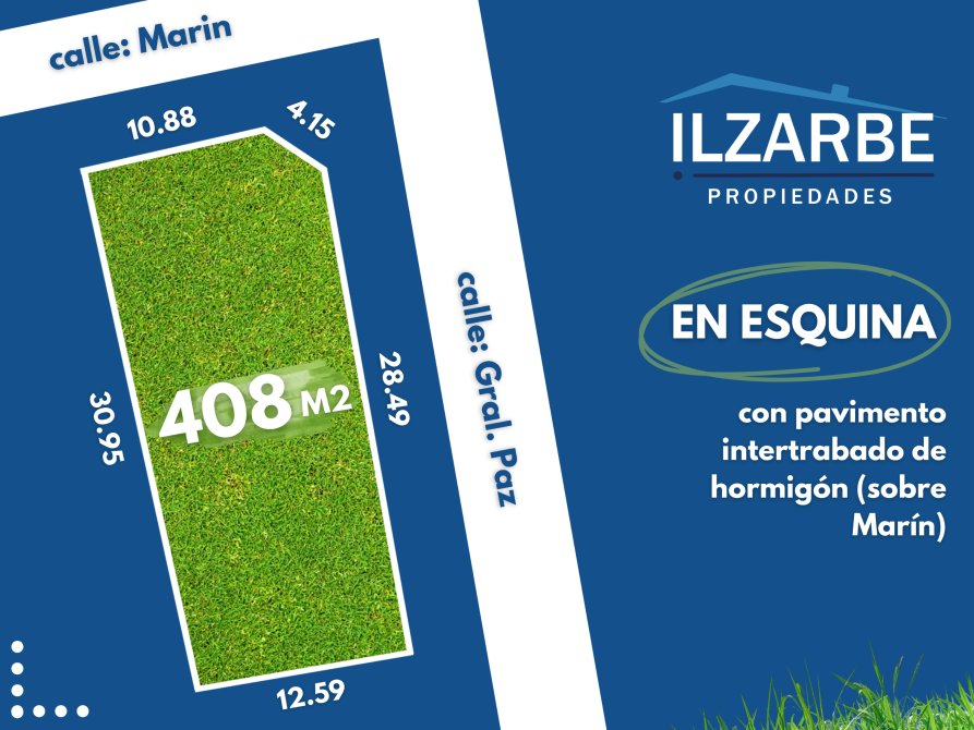 Terreno (en esquina) ubicado sobre calle Marín (esq. Gral. Paz). Con orientación norte y todos los servicios.