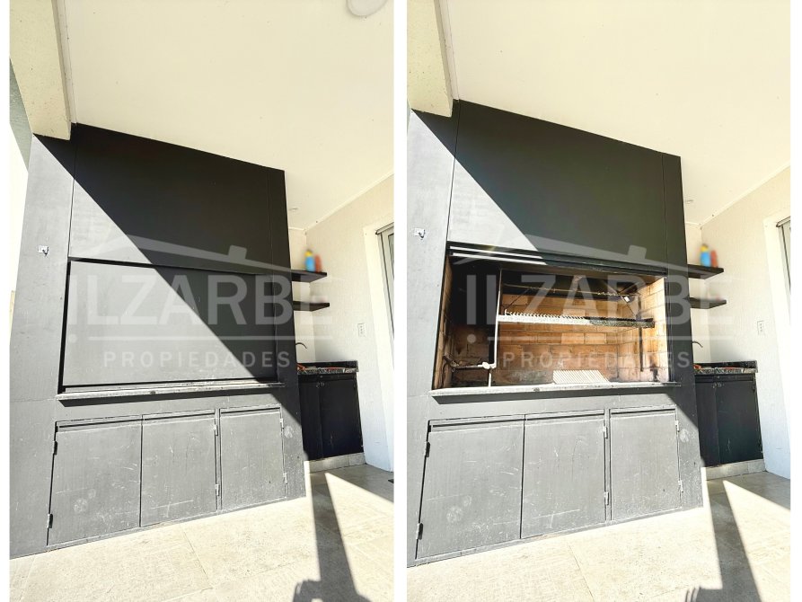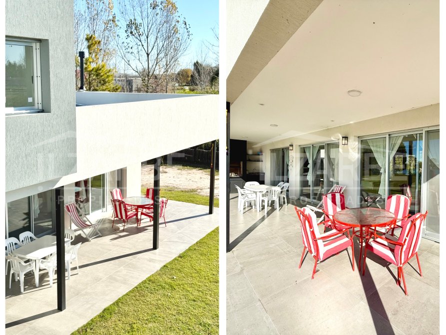 Todos estos espacios se conectan con una galería semicubierta de amplias dimensiones, equipada con parrilla de tapa corrediza, mesada con bacha y prácticos bajo mesadas. Un lugar ideal para disfrutar del aire libre con todas las comodidades. El diseño moderno y la integración con el jardín generan un ambiente cálido y versátil.